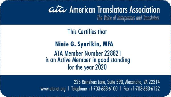 The working languages are English, Indonesian, Malay, Javanese and Arabic-Malay (Jawi). Ninie has managed