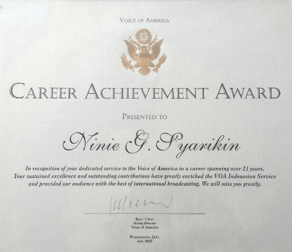 broadcast journalist at the USAGM's Voice of America, at the Indonesian Service in the nation's capital. As soon as she became